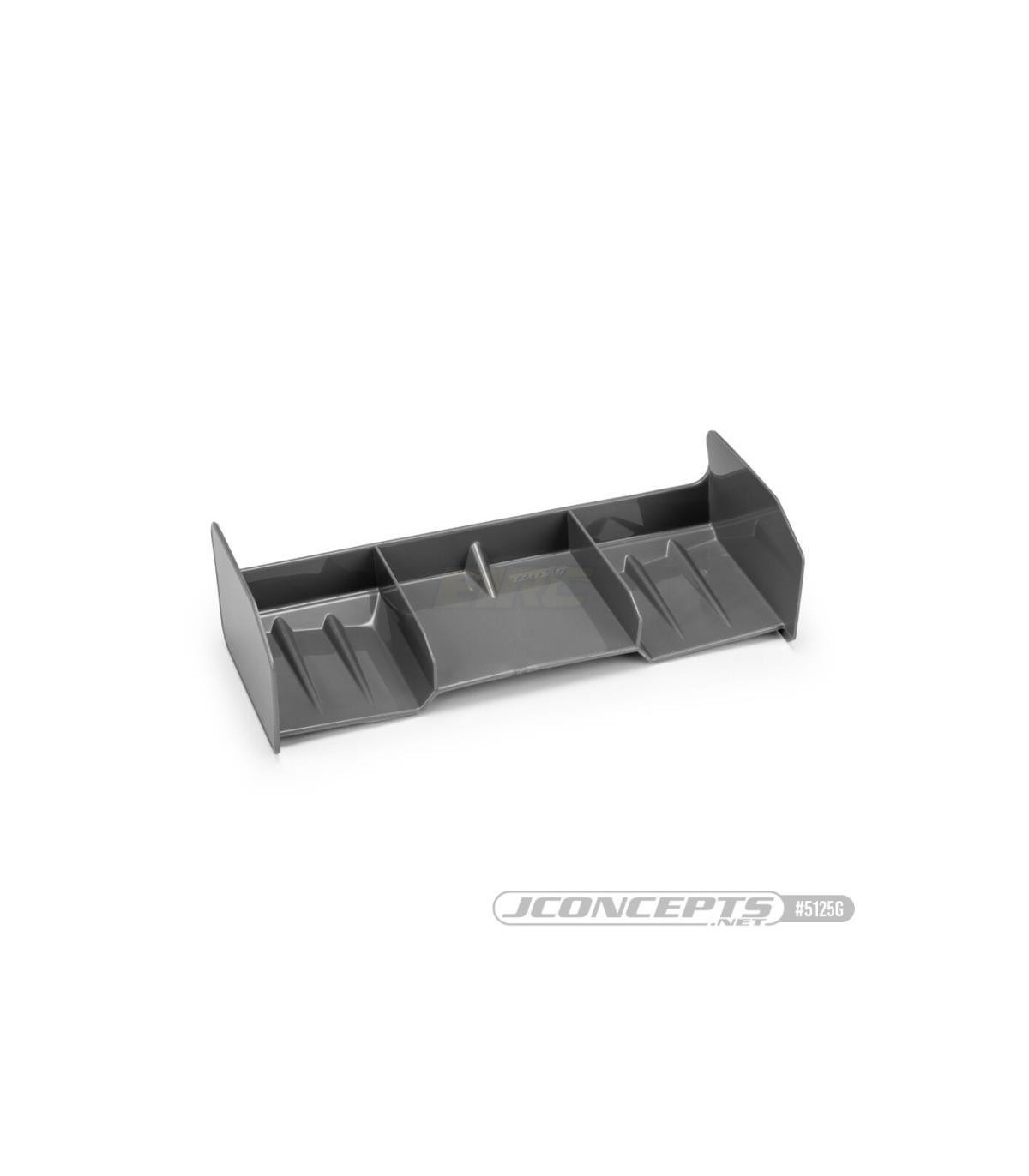 Al igual que todos los alerones JConcepts, los faldones laterales están rebajados para la colocación de calcomanías y mayor rigidez. El borde de ataque de los faldones está en ángulo, creando el aspecto característico de JConcepts a la vez que reduce la resistencia. El alerón presenta múltiples secciones de altura: el centro es más bajo para reducir el centro de masas del vehículo, mientras que los altos divisores centrales mejoran la estabilidad. Inspirado en los alerones todoterreno a escala 1:10, los múltiples detalles de "colmillo" proporcionan un diseño cohesivo.