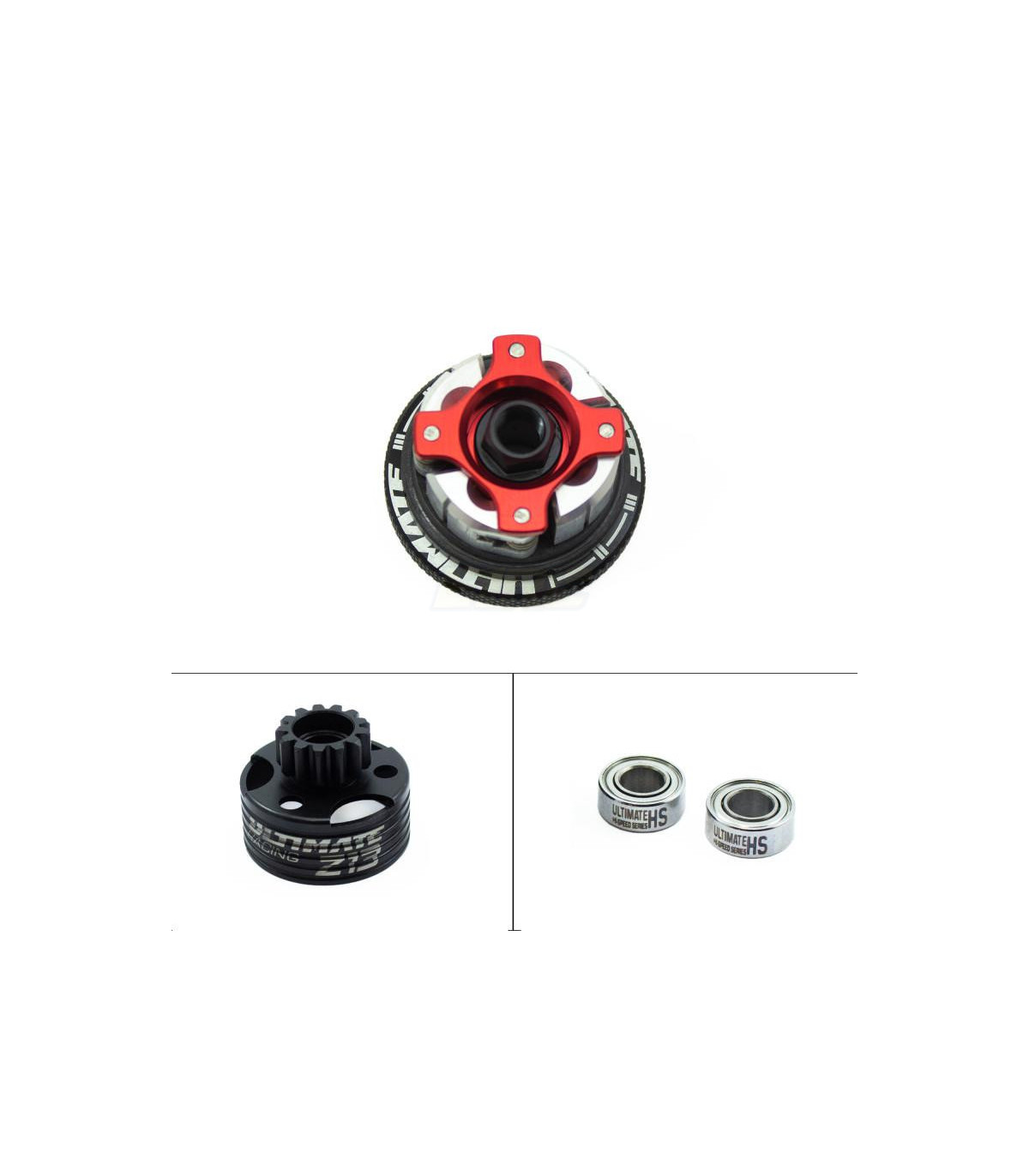 Éste es el kit de Embrague de Aluminio Compak 4 Pro Completo B10 con Campana Z13 con Rodamientos de Ultimate Racing.
