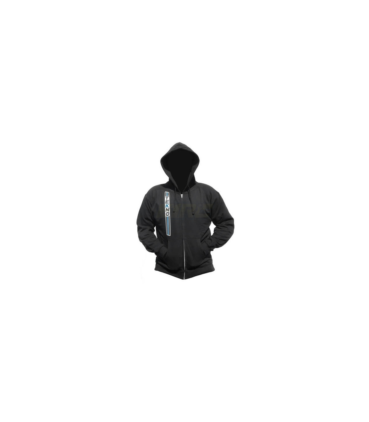 Imprescindible para cualquier fan de Tekno RC cuando hace frío. La última incorporación a nuestra línea de sudaderas con capucha cuenta con cierre de cremallera, un logotipo vertical estilizado en la parte delantera y un nuevo logotipo de estrella con la letra "T" en la espalda. Están confeccionadas con un 80 % de algodón y un 20 % de poliéster, y la impresión se realiza con una tinta especial resistente a la decoloración que le da un tacto suave, casi como si formara parte de la tela. Disponibles en negro y en tallas de la S a la XXXL.