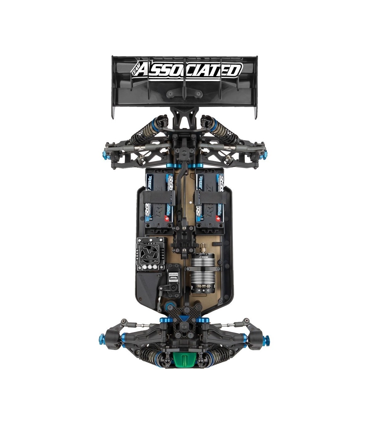 Configuración centralizada de transmisión y chasis RC8B4e optimizada solo para baterías de estilo corto