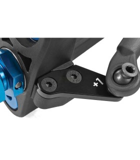 El soporte del alerón trasero RC8B4 tiene cuñas de ángulo de ala ajustables, mejoras significativas en la resistencia, una forma aerodinámica y espacio adicional para ajustar la posición del amortiguador. Dos opciones de altura de ala en la torre de choque trasera.