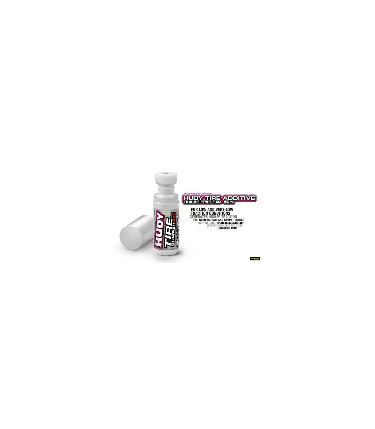 The Hudy Touring Red Tire Additive is the perfect solution to maximize the performance of your tires on competition on-road circuits. This 50ml formula significantly improves grip and consistency of the compounds during qualifying and racing sessions, allowing you to achieve faster and more stable laps.