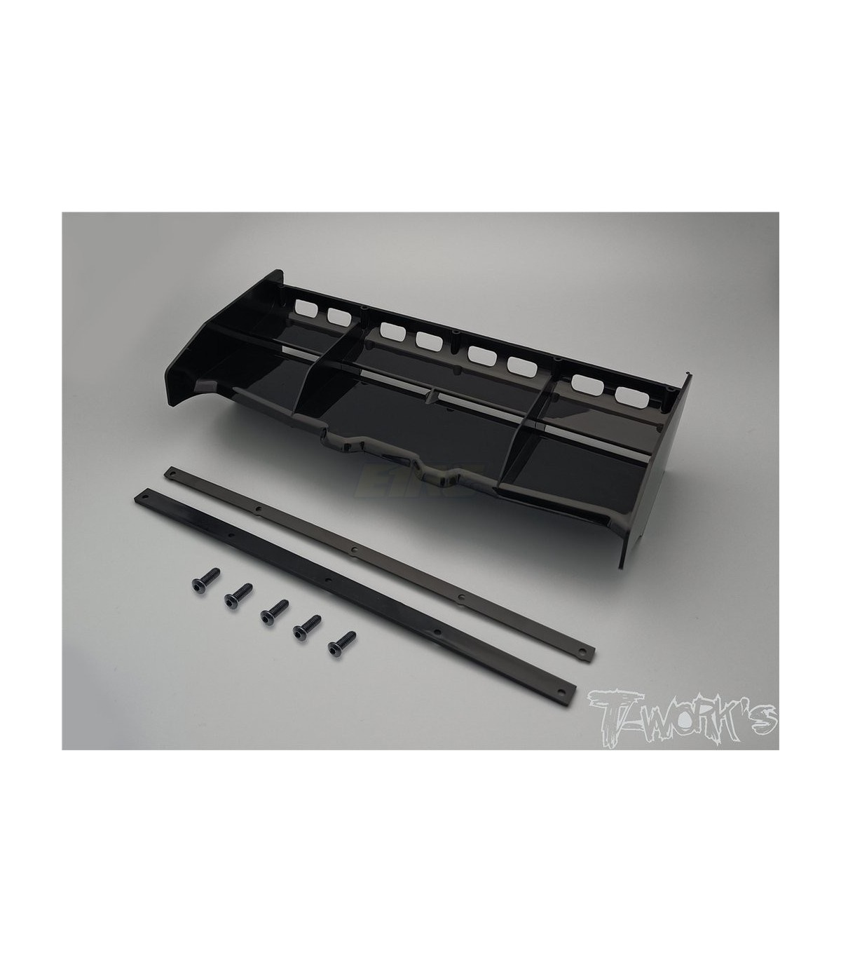 T-Work's has come up with a 1/8 Buggy Wing which features a wickerbill design that allows greater air flow and increases the downforce when needed.