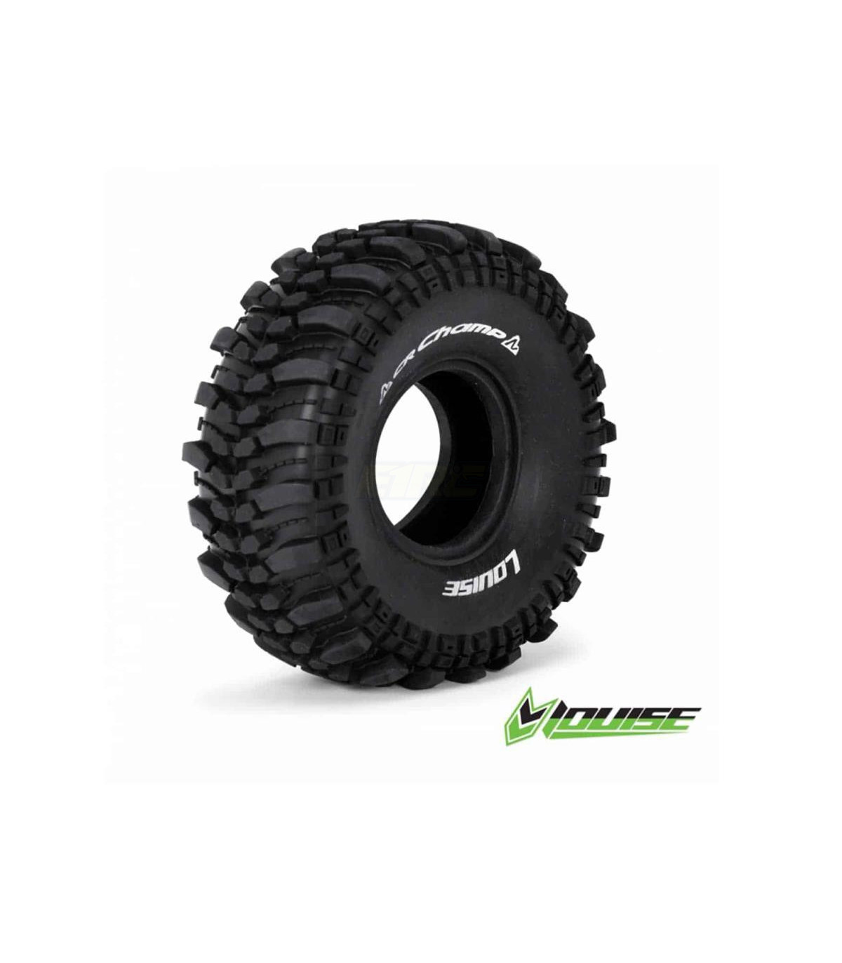 Neumáticos Louise RC CR-CHAMP en compuesto Súper Blando para llantas de 1.9". Es un neumático de crawler muy popular por su agarre extremo.