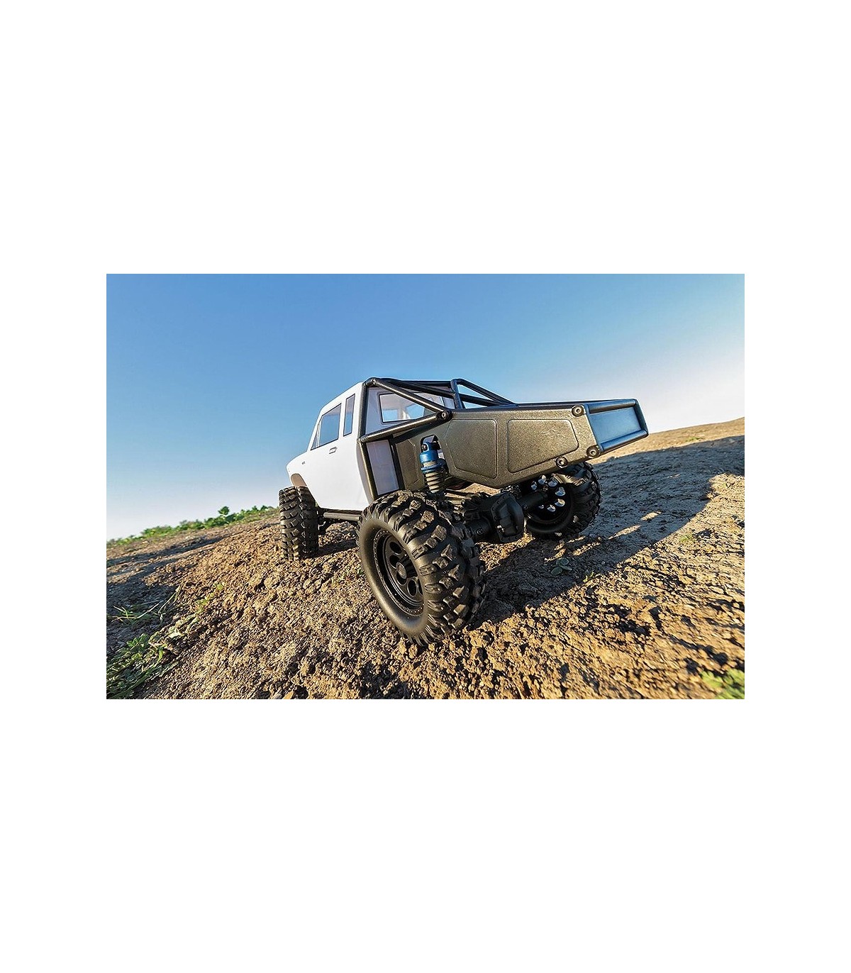 Designed not only for scale looks with realistic wheels, tires and body, the CR12 is built for performance as well. The steel ladder frame chassis provides the perfect backbone for this rugged rig. The 4-link suspension, threaded shocks, and soft rubber tires give the grip and performance needed to climb over the roughest terrain. Transferring power to the rocks is a compact 3-gear transmission, plastic low-friction slider-type drive shafts, front steel CVA axles, and metal-shield ball bearings.