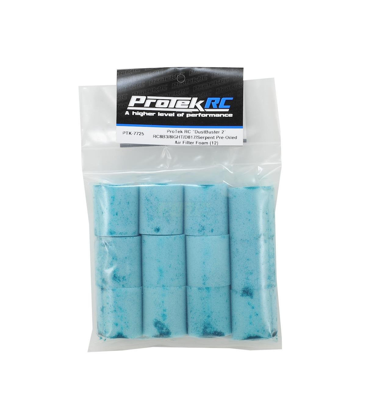 This is a pack of twelve ProTek R/C "DustBuster 2" Pre-Oiled Air Filters, intended for use with the Team Associated RC8B3, Losi/TLR 8IGHT family of vehicles, Serpent SRX8, Tekno NB48 2.0 family of vehicles and the D8 family of vehicles equipped with the optional Hot Bodies V2 Air Filter Set (HBS114623).