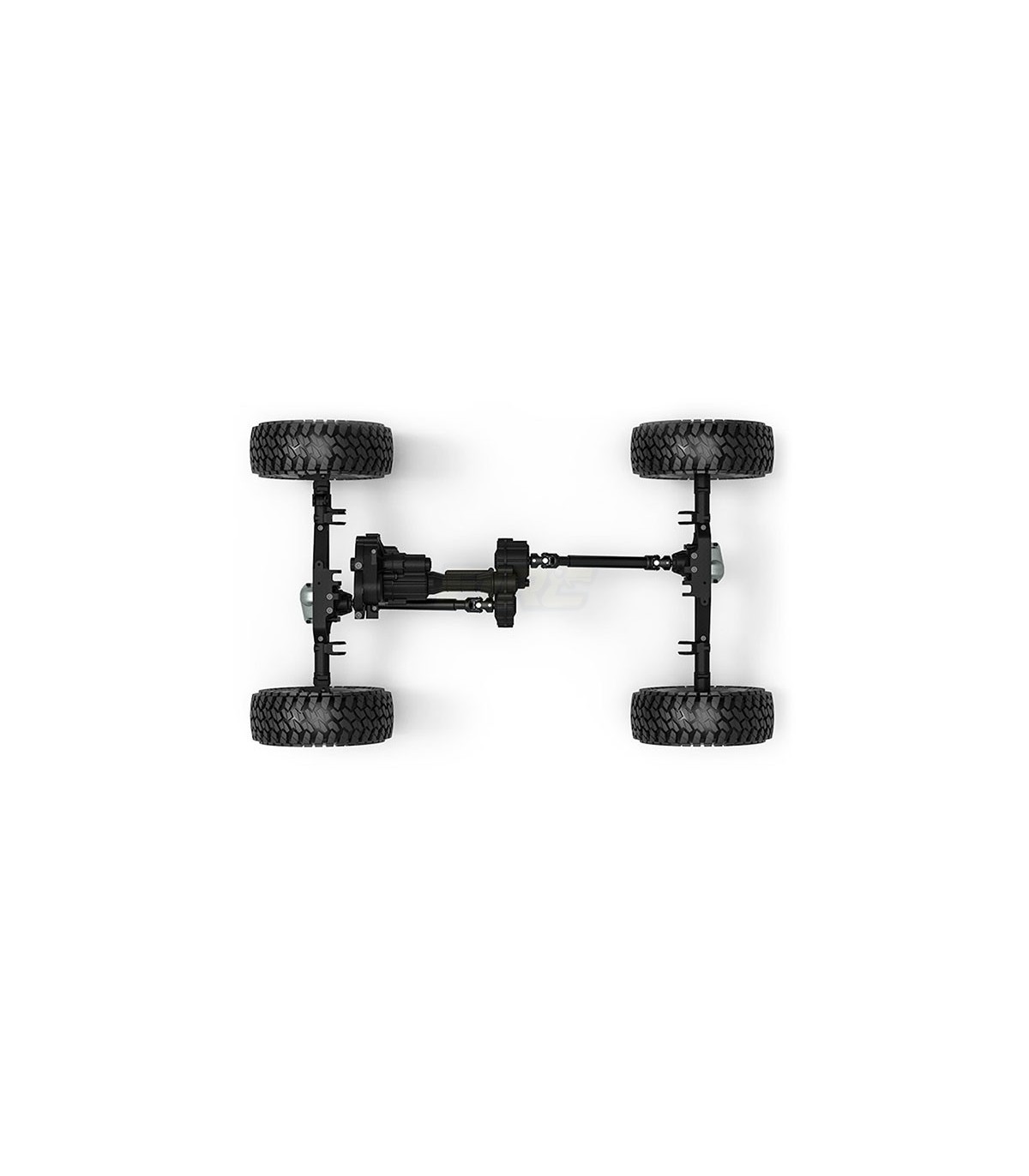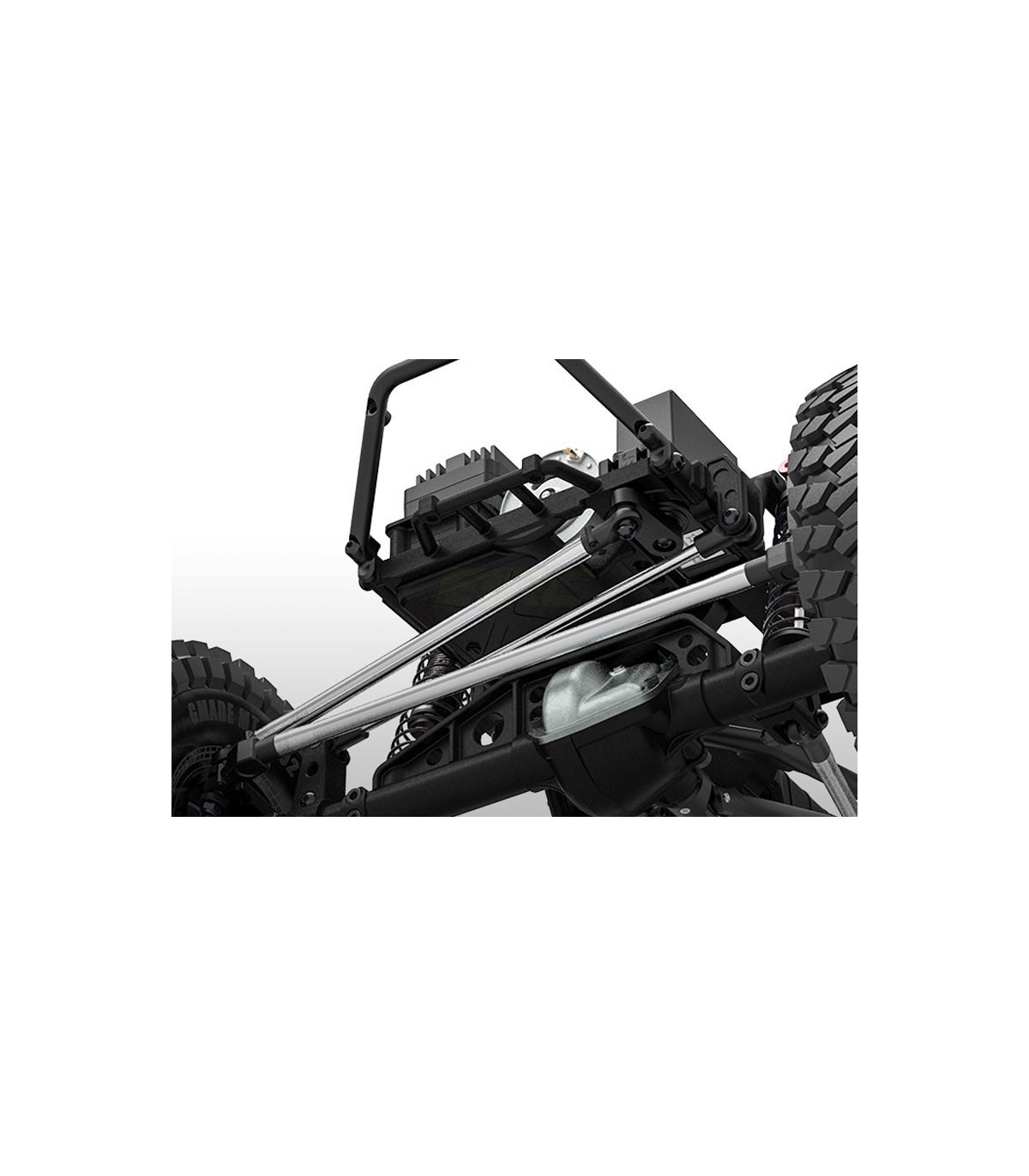 The GOM (translates to "Bear") features a lightweight, extremely rigid tube chassis that not only looks extremely scale but also protects against impact. The steering servo is mounted to the chassis, and bump steer has been minimized to provide the best possible steering performance. The dustproof receiver box and easy access battery door provide plenty of space for your components. The GOM's front weight balance is designed to increase traction to the front wheels, improving climbing on steep angles and minimizing roll-overs.