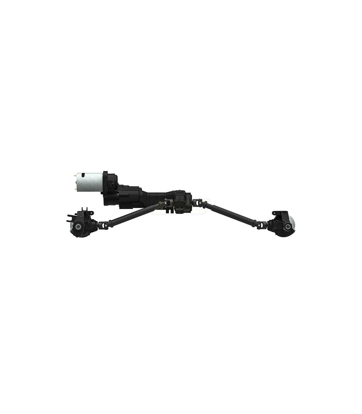 The 2-speed transmission and transfer case with built-in dig function are designed to enhance the scale appearance of the vehicle. The 1st gear is for hardcore rock climbing, and the 2nd gear is for hill climbing or high-speed driving. Drivetrain efficiency has been improved by lowering the transfer case and reducing the driveline angle. The dual pad slipper holds the spur gear firmly and evenly, making precision settings easy to achieve.