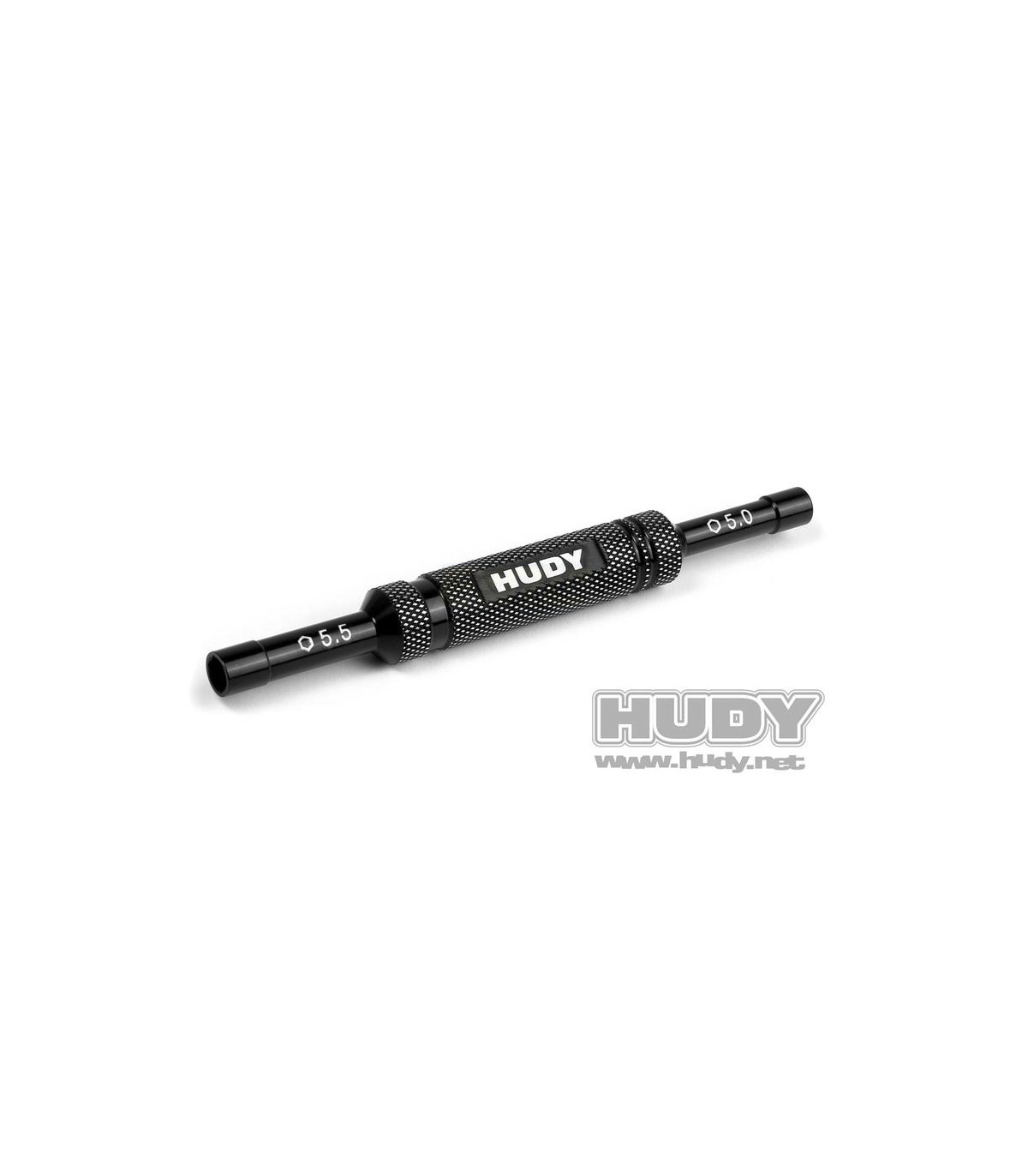 The double-ended 5mm - 5.5mm tube wrench by Hudy is an essential tool for any competitive RC pilot. Precision-designed to work with nuts of two different sizes, it allows for quick and efficient adjustments without the need to switch tools. Compatible with both 1/10 and 1/8 scale models for both on-road and off-road racing, it becomes a must-have ally in your toolbox.