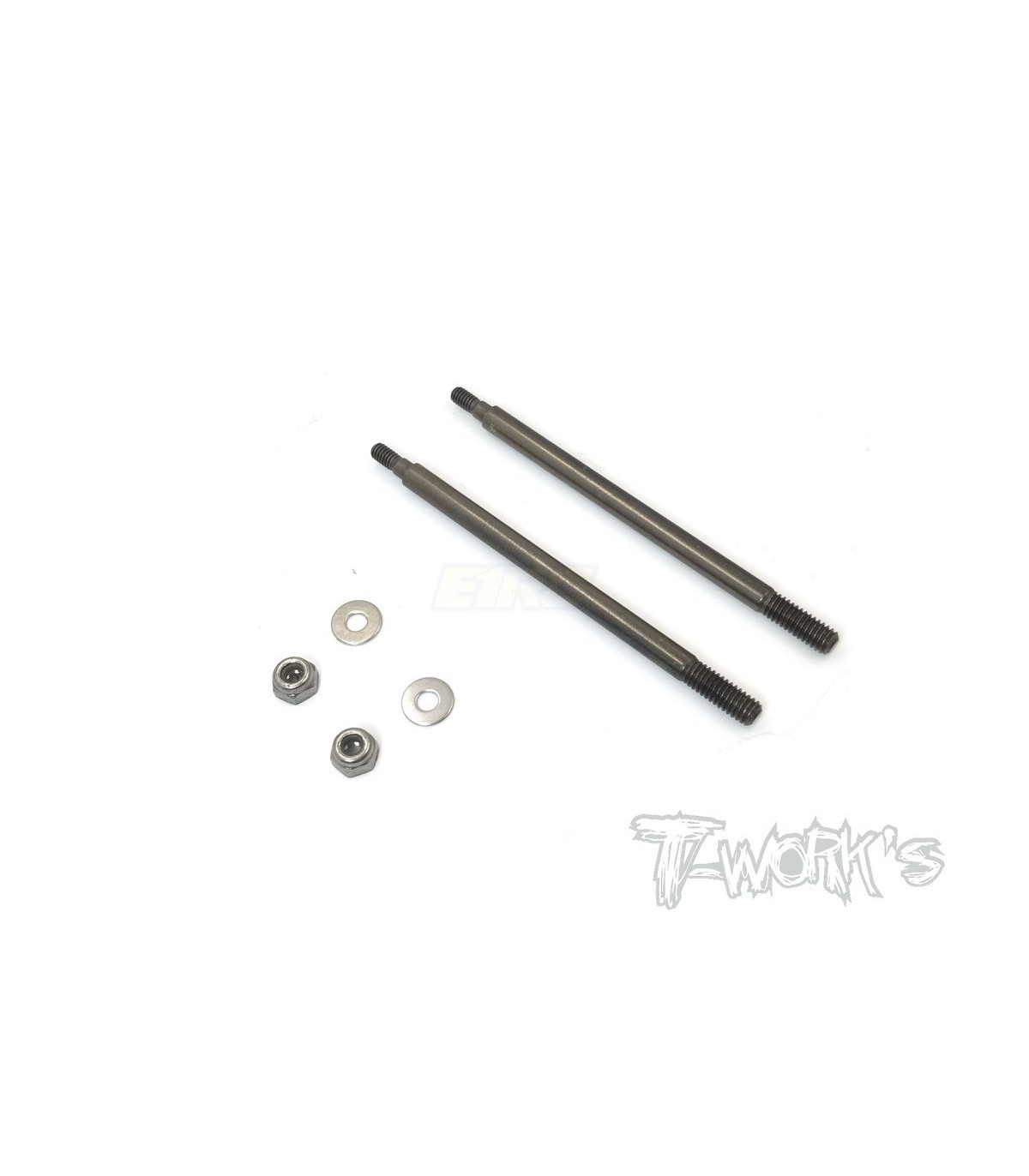 The T-Work's front shock shafts of 59.7mm with DLC coating are precision components designed to significantly improve the front suspension behavior in your Mugen MBX8, MBX7, and MBX7R. This set of 2 units offers a high-performance alternative that replaces the original reference E0517, providing greater durability and consistency on the track.