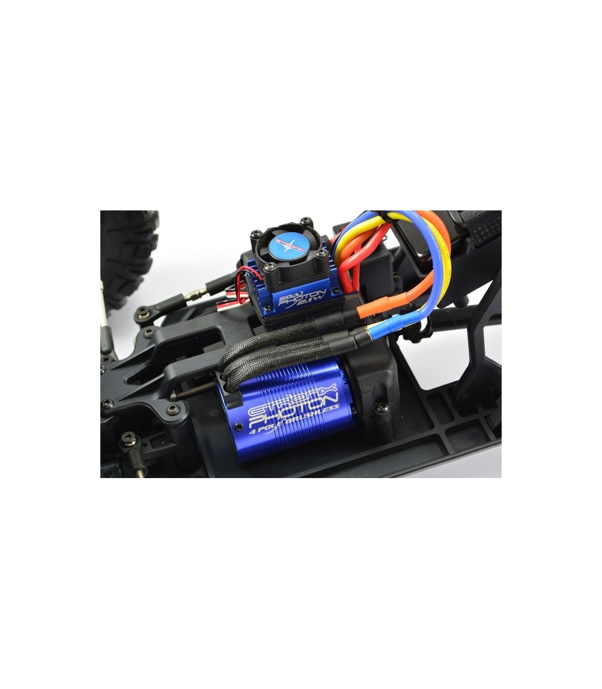 FTX has been chosen. Etronix for the brushless system with its waterproof 60Amp Photon 2.1W speed control and 2950kv 4-pole motor. Combine it with the Voltz 3250mAH LiPo battery and you will have all the power you need to unleash the Outlaw.