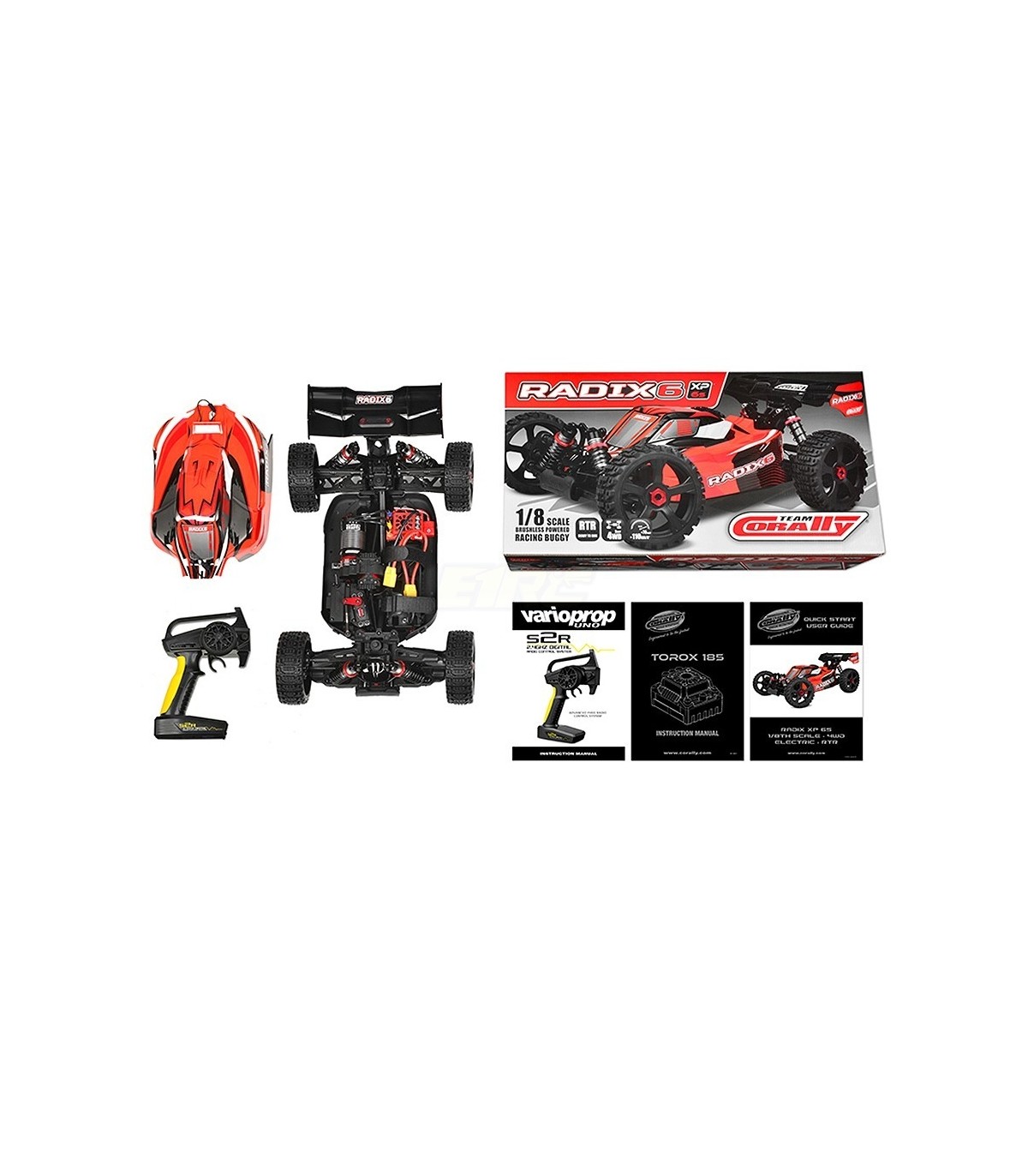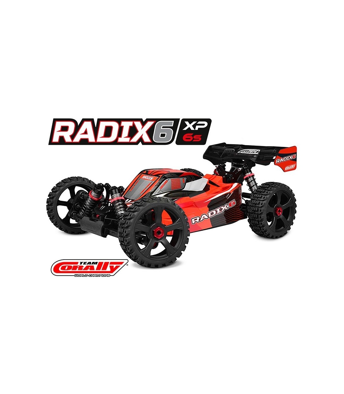There are very few RC experiences that can compare to the unmatched speed, handling, durability, and performance of a premium 1/8 scale electric 4WD buggy. The new Radix 6 XP 4WD 1/8 Scale Brushless Buggy from... Team Corally The Radix 6 XP offers all this and more in a convenient Ready-to-Run (RTR) package! With a 4-6S LiPo battery powering the 2050KV brushless motor included, you can easily dominate the track or conquer rough terrain. Looking to race? It's no wonder that the Radix 6 XP is a highly capable entry-level competition race car, perfect for Sportsman 1/8 Electric 4WD Buggy Racing (when using 4S power).
