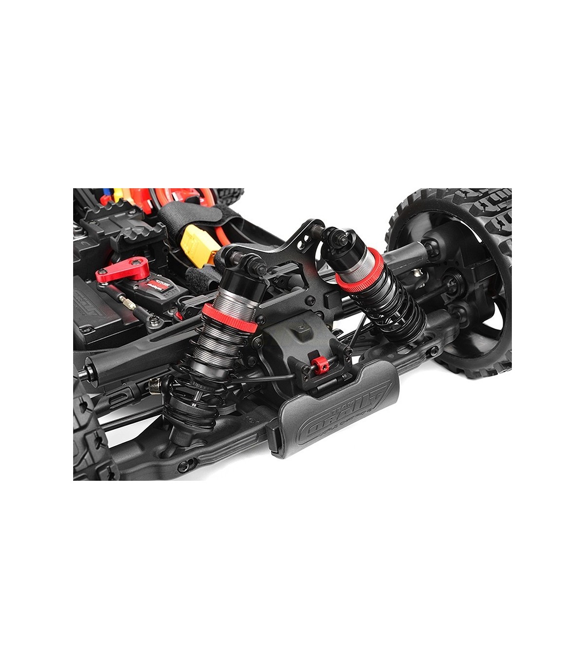 Featuring a robust, efficient all-metal four-wheel drivetrain, fully independent suspension, racing chassis, and aerodynamic, high-downforce racing bodyshell design, this is the ultimate electric 1/8 buggy for those seeking impressive speeds, exceptional handling, and the toughness to withstand intense racing or bashing scenarios.