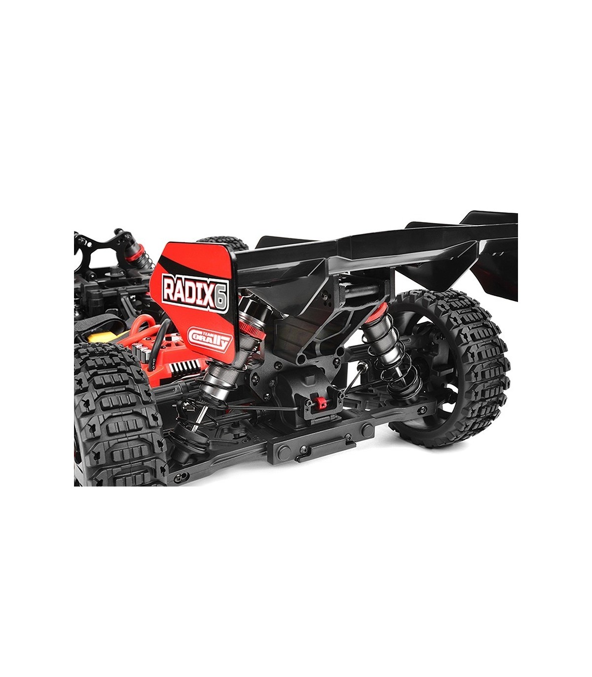 The Radix 6 XP RTR is an innovative, durable, multi-use all-terrain machine! If you appreciate the sleek appearance, unmatched performance, and precise handling that only 1/8 buggies can offer for conquering tracks, bashing spots, or pulling off awesome jumps over challenging terrain....look no further than the Radix 6 XP!