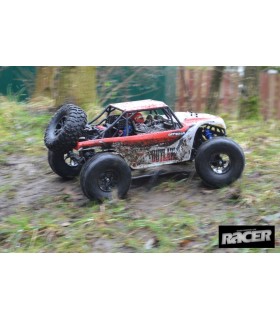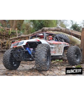 El MAMMOTH SP viene con una carrocería de policarbonato. El policarbonato es conocido por ser un plástico extremadamente resistente y altamente resistente a impactos. La carrocería ya está coloreada en un diseño atractivo, con bonitos adhesivos y una eficiente jaula antivuelco. Los grandes parachoques en la parte delantera y trasera protegen la carrocería en caso de un fuerte impacto. Nota: Muchos autos RC hoy en día vienen con una carrocería hecha del material PVC mucho más barato, pero en el primer choque, generalmente se rompe o rasga.
