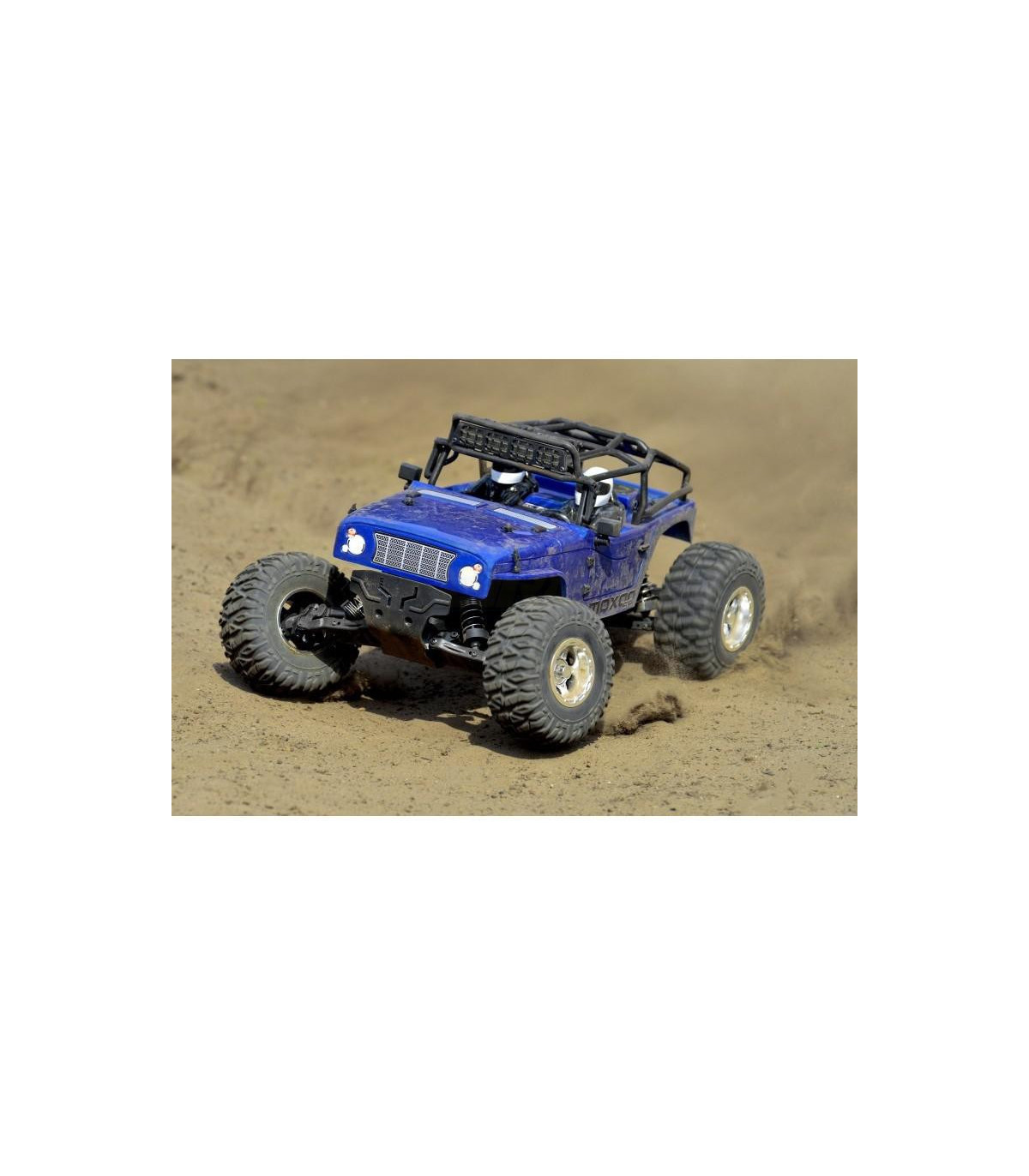 El MOXOO SP viene con una carrocería de policarbonato. El policarbonato es conocido por ser un plástico extremadamente resistente y altamente resistente a impactos. La carrocería ya está pintada en un atractivo color metálico azul, terminada con adhesivos atractivos y una jaula de protección que garantiza un diseño fuera de la carretera muy realista. Además, la jaula de protección está equipada con una barra de luz removible de 4 LEDs preparada para LEDs de 5 mm (LEDs disponibles opcionalmente). Nota: Muchos autos RC hoy vienen con una carrocería hecha del material PVC mucho más barato, pero en el primer choque, generalmente se rompe o rasga.