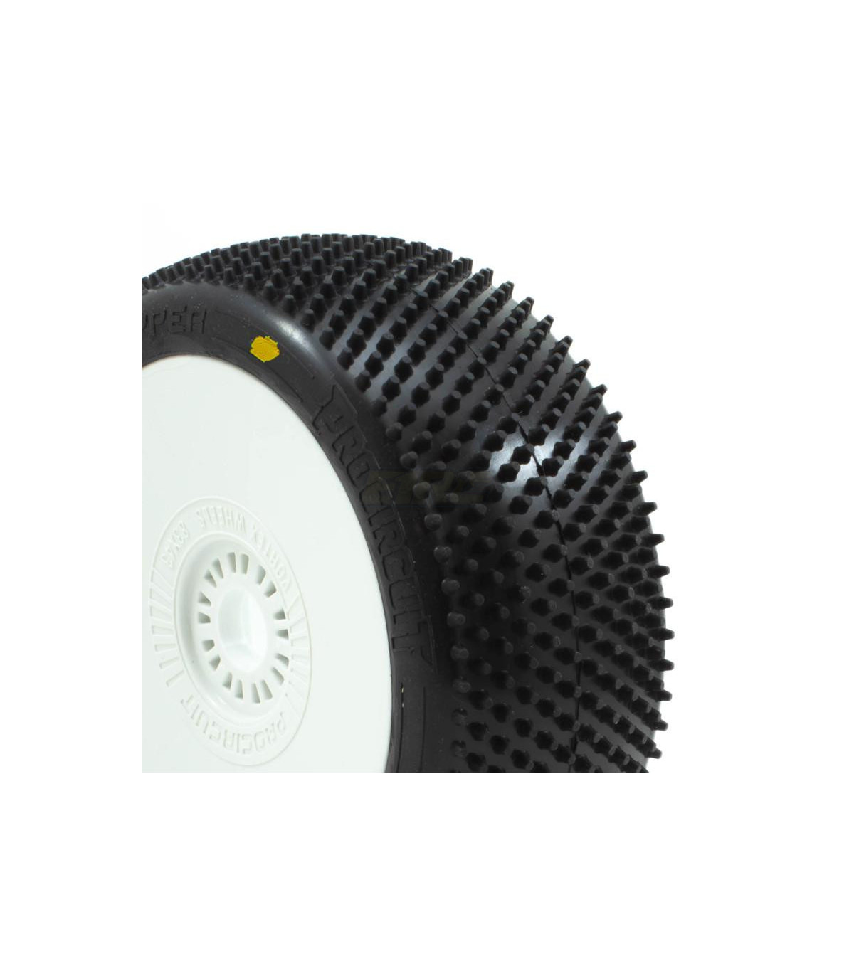 La Grasshopper ofrece un rendimiento máximo en superficies de moqueta, con una disposición uniforme de tacos largos por toda la superficie del neumático. Esta configuración proporciona un agarre lateral muy alto y una tracción potente, lo que la hace ideal para el eje trasero o para configuraciones que busquen máximo agarre y una dirección más agresiva.