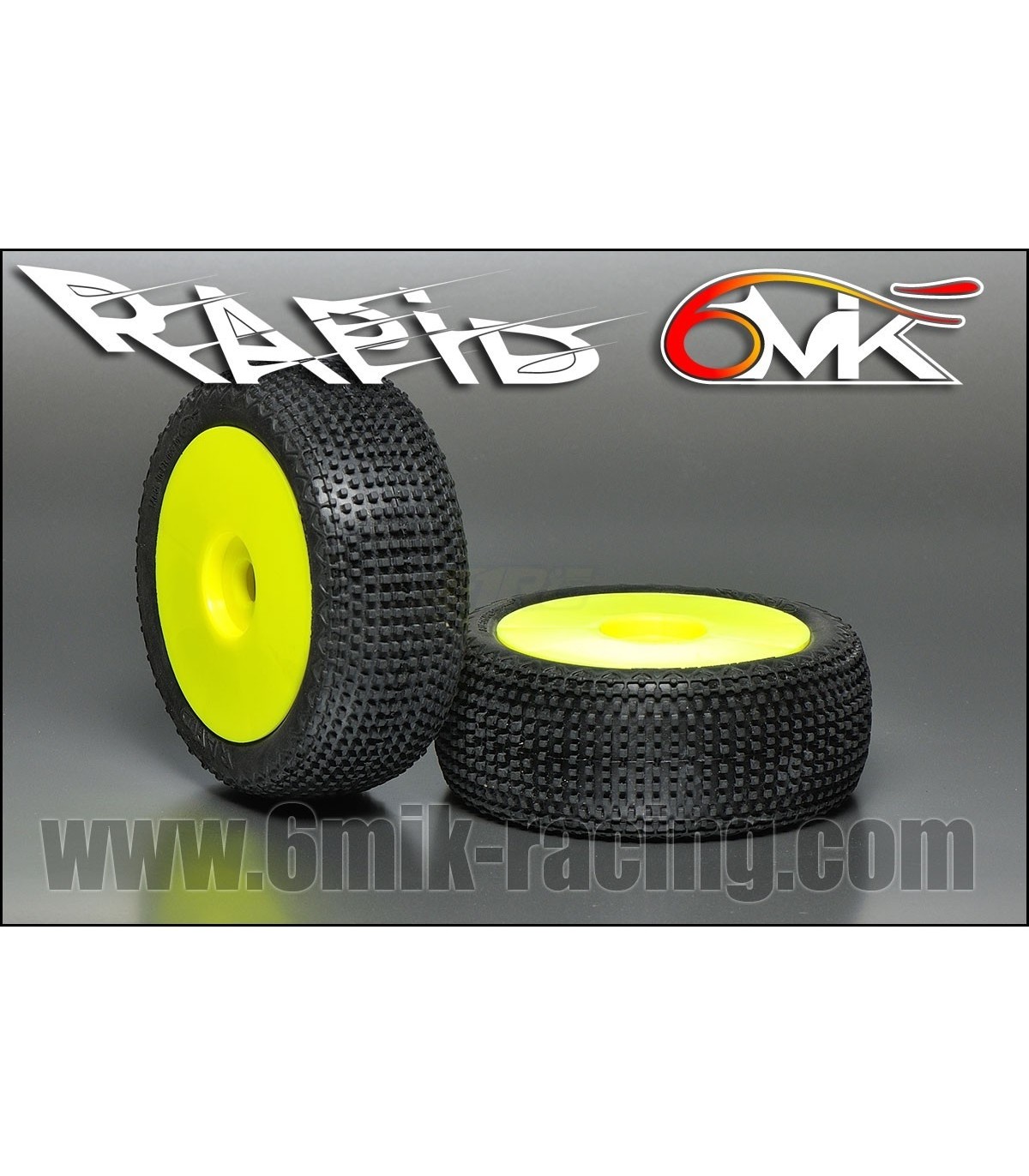 RAPID is the synthetic blue compound from 6mik designed specifically to maximize grip on asphalt surfaces. Mounted on a high-performance ultra-yellow wheel, this set of tires will provide you with the necessary traction to significantly improve your track times. Perfect for 1/10 On-Road pilots looking for a balance between durability and exceptional grip.