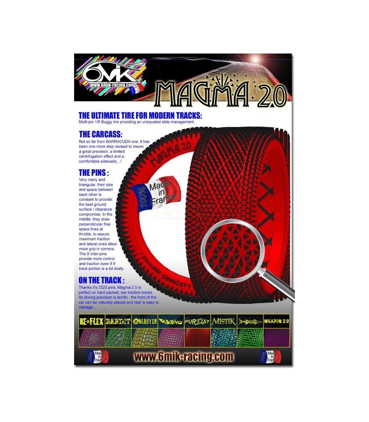 The MAGMA 2.0 19/33 Ultra tires in yellow rim from 6mik represent the evolution in adhesion and performance for your 1/10 On-Road. Designed with an ultra sticky compound, these tires guarantee exceptional traction in competition, allowing you to maximize the potential of your chassis.