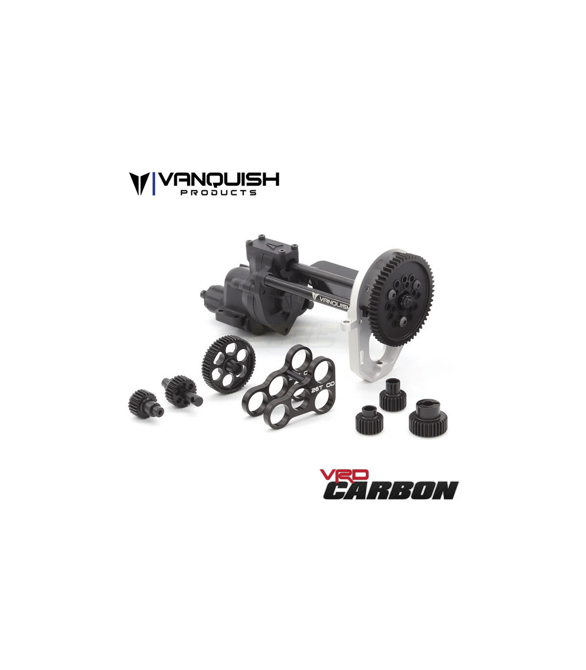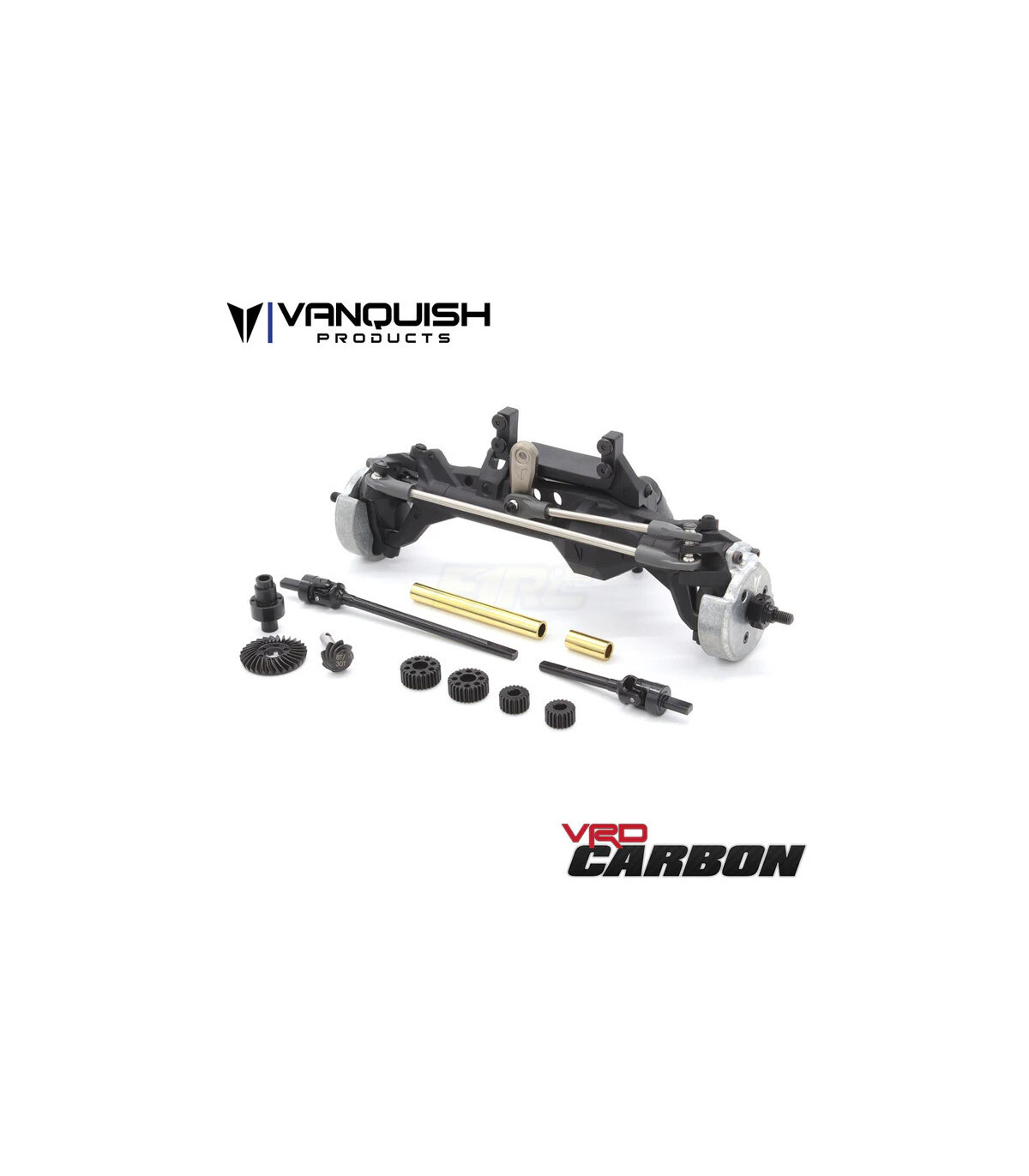 The Vanquish Products VRD Carbon Kit is our first competition platform, developed by some of the most experienced designers in the RC rock crawling industry. Featuring a brand-new lightweight spec VFD transmission and updated F10 competition portal axles, the VRD Carbon Kit is an extremely competitive, reliable, and versatile platform. At the heart of the VRD Carbon Kit are two matte, 3mm thick carbon fiber plates bonded to the 6-degree flat skid plate. The injection-molded chassis components and skid plate position the lightweight VFD transmission as low as possible within the VRD chassis. The F10 front axle features a 4-link design for the first time. Both the front and rear axles are fitted with brass inserts, in addition to the aluminum front kingpin weights, to keep the center of gravity as low as possible and improve off-road capability.